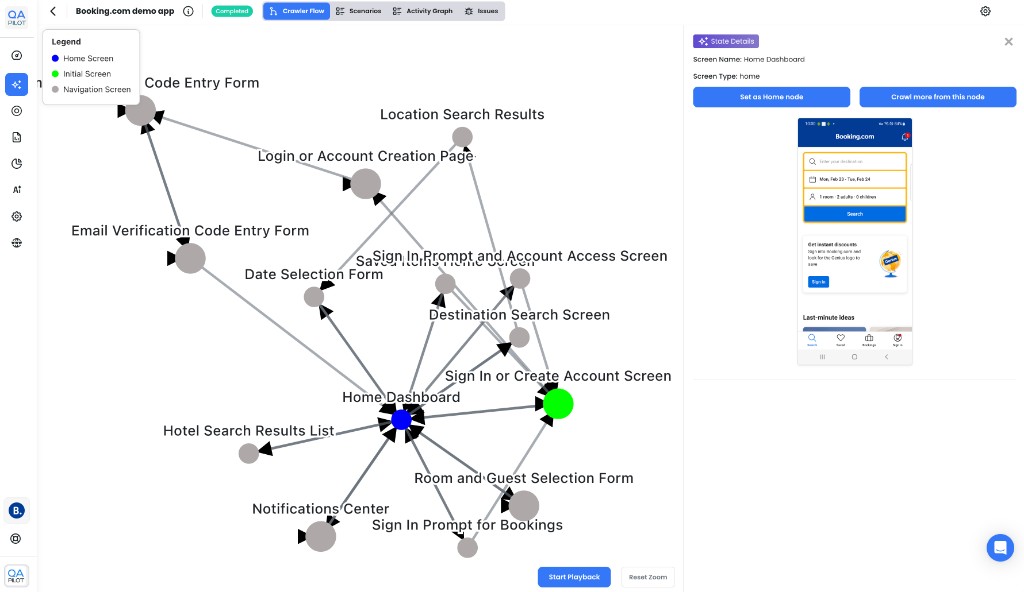 QApilot's mobile app crawler navigates even the trickiest app flows, building a live Knowledge Graph that becomes the brain of QApilot's autonomous agent network.